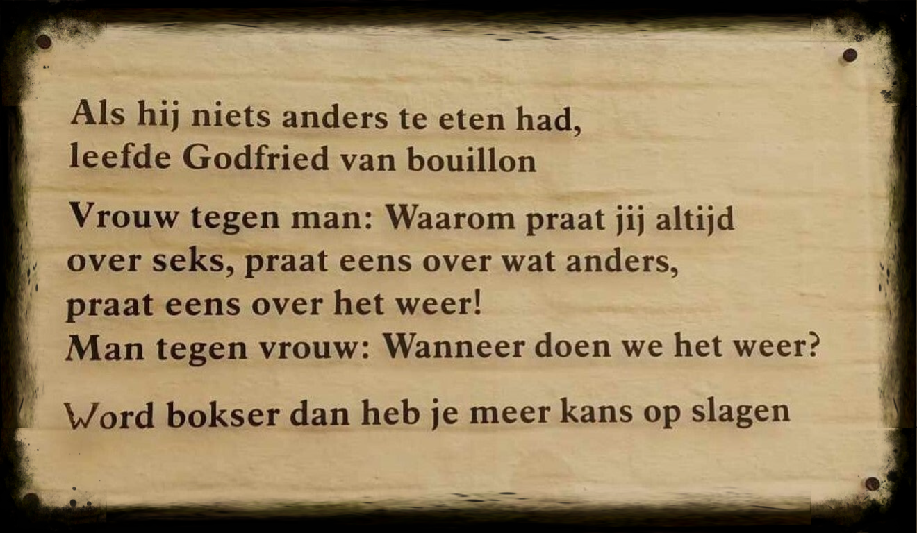 Daarna maken we een stop bij het iets verder gelegen Godshuis St. Jozef, waar een muur vol leuke spreuken en mopjes ons even laat glimlachen.
