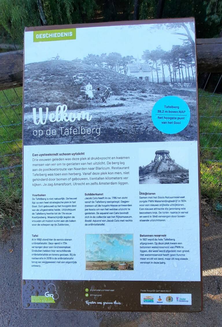 De Tafelbergheide is de hoogste ‘berg’ in het Gooi (36,4 m). De naam is ontleend aan een 18e-eeuwse oriëntatietafel.