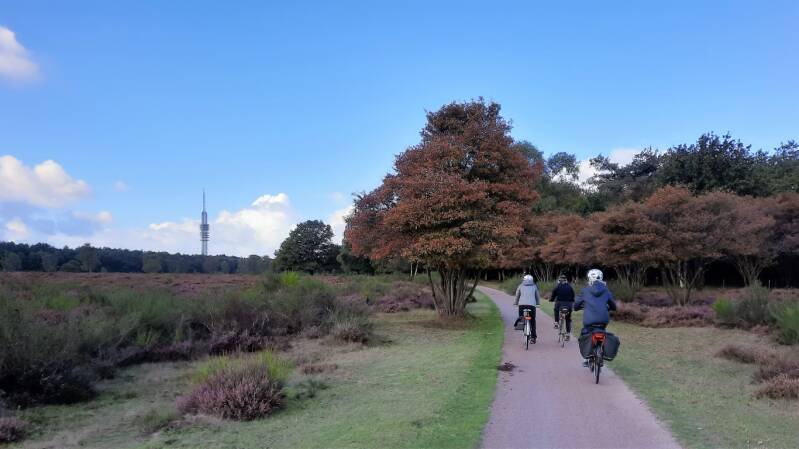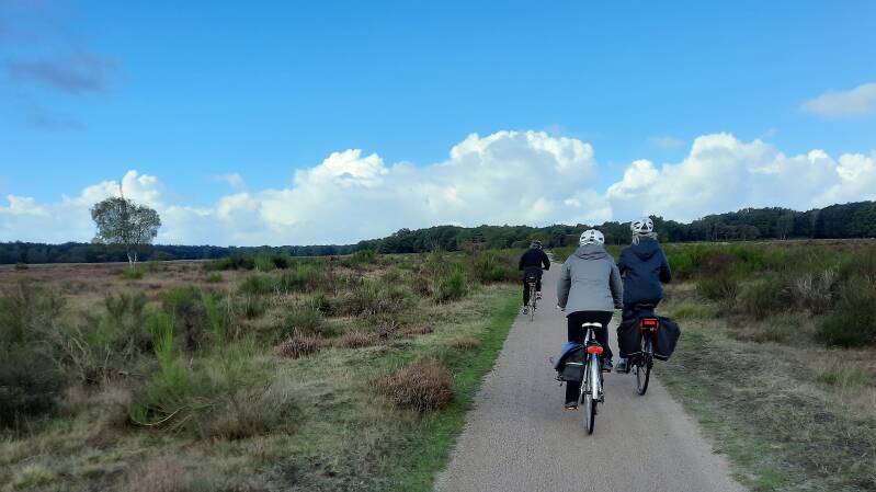 Na Hilversum komen we in de Zuiderheide en fietsen over een mooi open gravelpad.