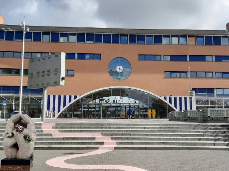De vroegere gebouwen van de VARA en het station van Hilversum.