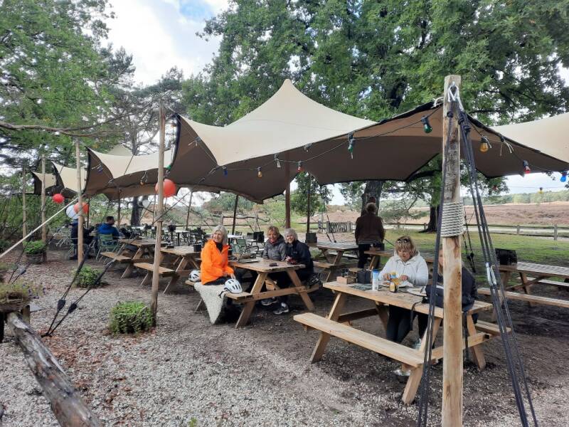 Na 37 km nemen we een pauze in het strandpaviljoen van het populaire badplaatsje Muiderberg.