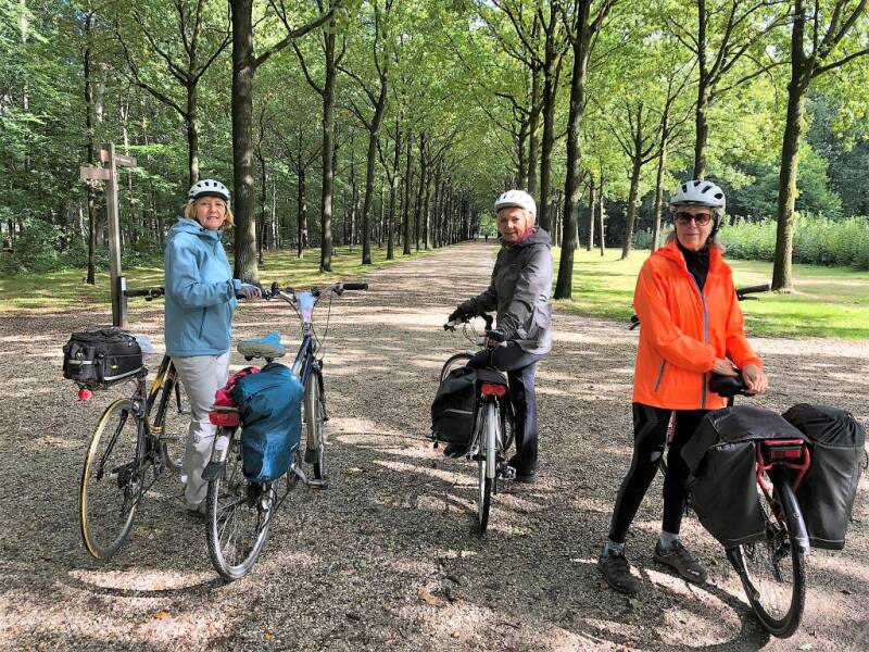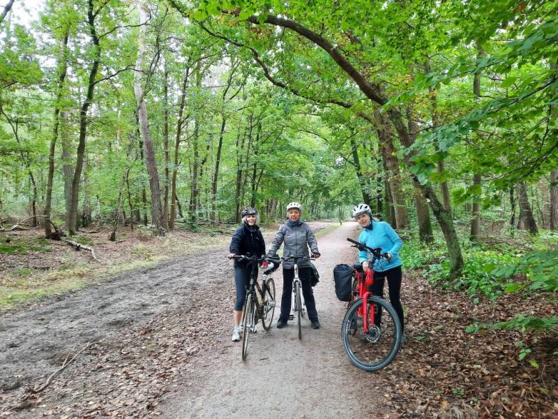 We fietsen door het Spanderswoud, waar de paden slingeren langs imposante beuken- en eikenlanen.