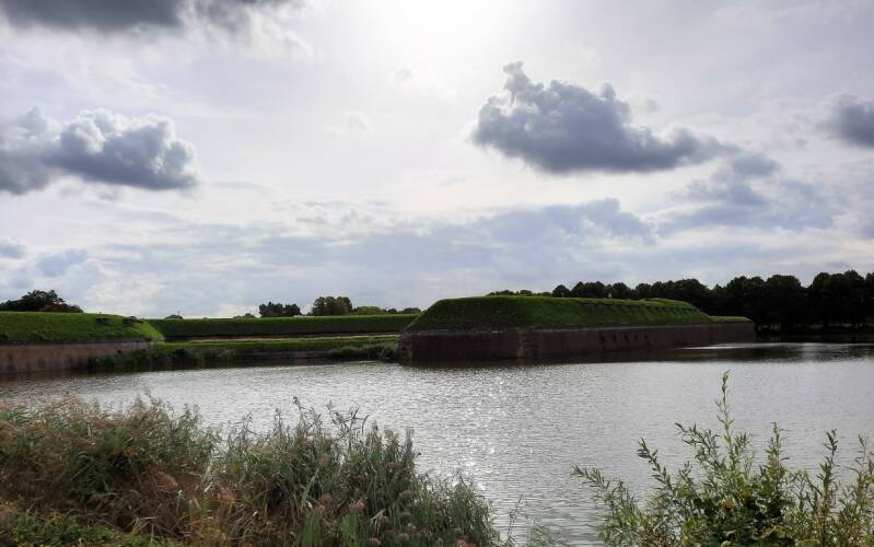 Links van ons passeren we een aantal kazematten, die herinneringen oproepen aan de Duitse inval in 1940.