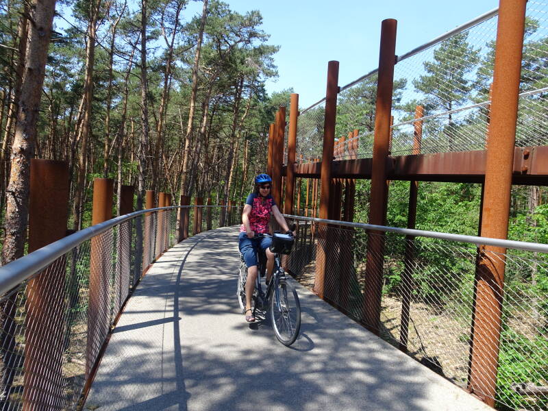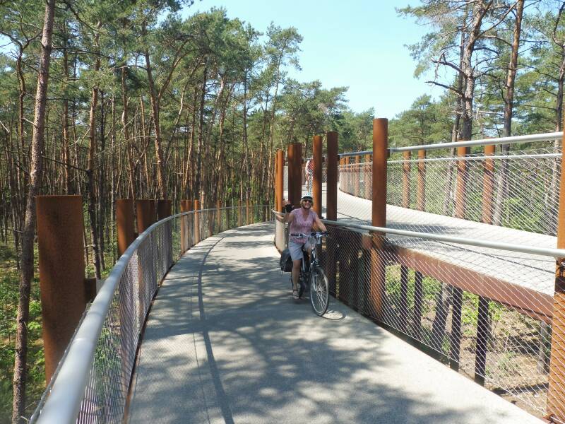 Fietsen door de bomen (Hechtel-Eksel): Op dit fietspad geraak je veilig in hogere sferen. Letterlijk, want via een dubbele cirkel fiets je helemaal tot tussen de boomtoppen, tot wel tien meter. Het fietspad is in totaal 700 meter lang. Je beleeft de natuur op een heel andere manier en wordt als het ware één met het bos. Het ligt aan knooppunt 272 van het fietsroutenetwerk in natuurgebied van het Pijnven, wat dan weer deel uitmaakt van het dichte boslandschap van Bosland. (Bron: visitLimburg)