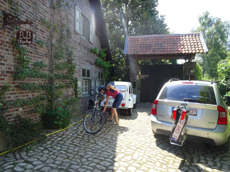 Met de 2 elektrische fietsen achterop de auto rijden we naar onze B & B (wat nog altijd een verrassing is) in de Gelderhorsten 79 te Lommel.
