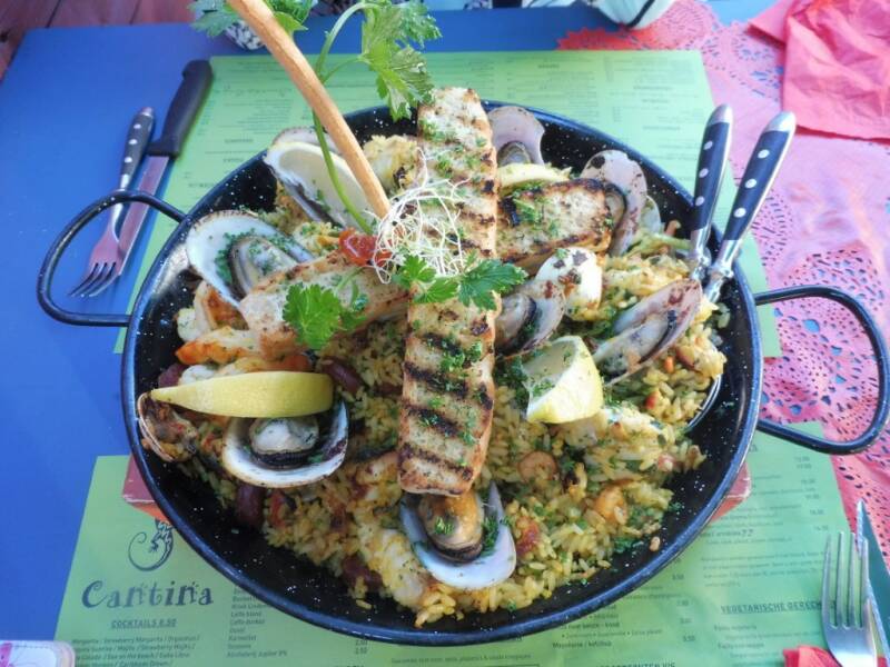 Op zoek naar een gezellig restaurant in Lommel zijn we terecht gekomen in de Cantina, waar Spaanse, Italiaanse én Mexicaanse gerechten op het menu staan. En om in de sfeer te blijven op deze zomerse avond, hebben we genoten van een Mojito en een lekkere paëlla.