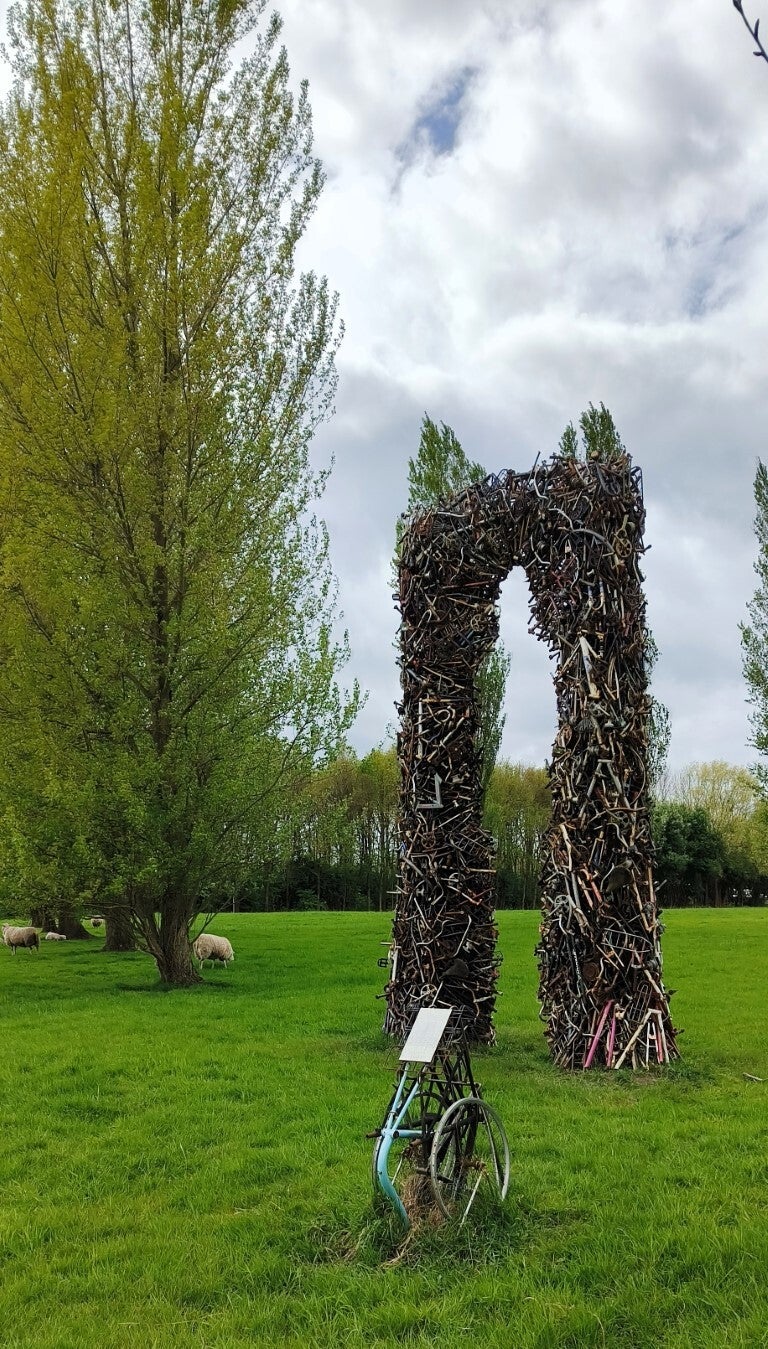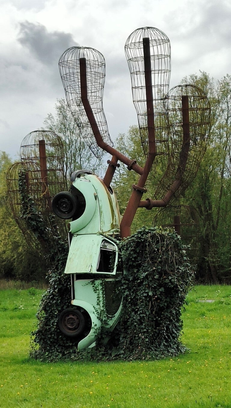 Op de parkeerplaats krijgen we onze eerste regenbui, maar gelukkig duurt het niet lang. Na het verorberen van onze boterhammen breekt de lucht open en verschijnt er een flauw zonnetje. Het is het moment om, via het beeldenpark, koers te zetten naar het centrum voor een stadsbezoek.