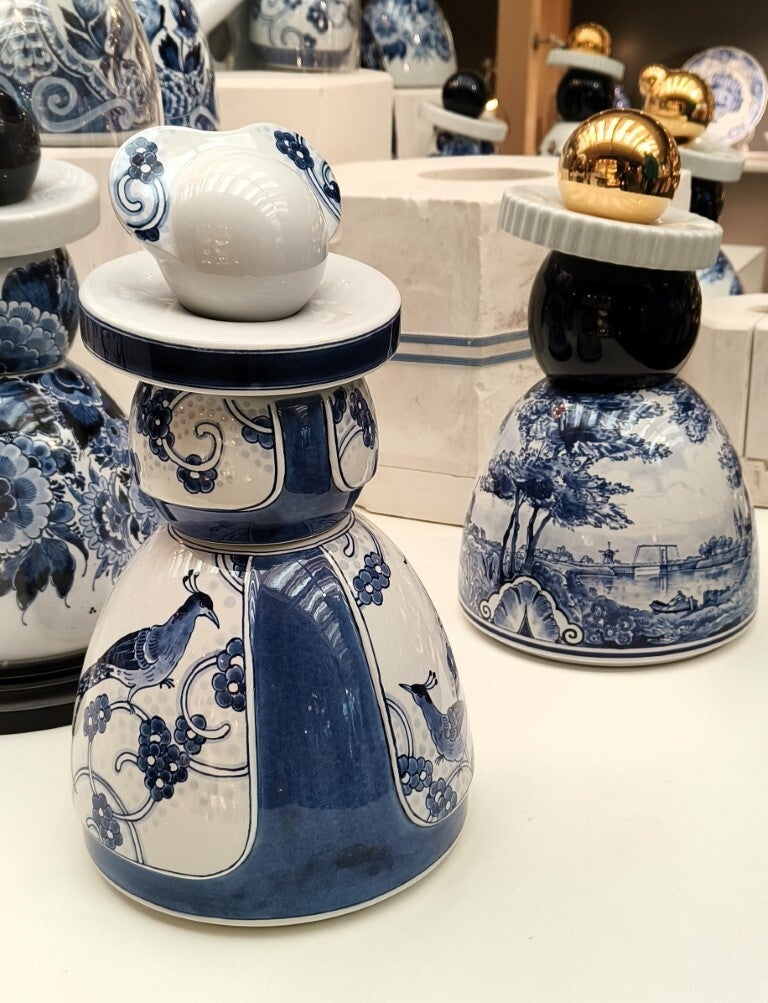 Deze Delfts blauwe lantaarnpalen zijn het resultaat van een culturele uitwisseling tussen Delft en Jingdezhen, een Chinese keramiekstad.