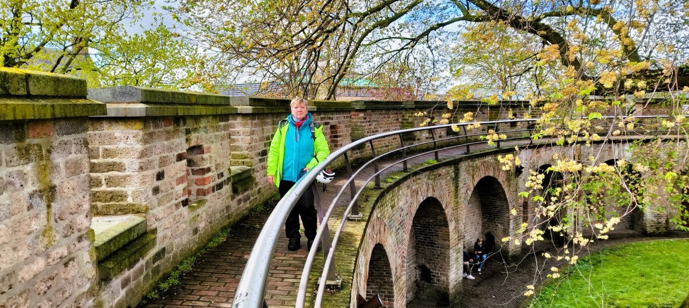 Na de regenbuien van de laatste dagen laten we de fietsen op de auto en parkeren we handig in een P&R-garage net buiten de stad.