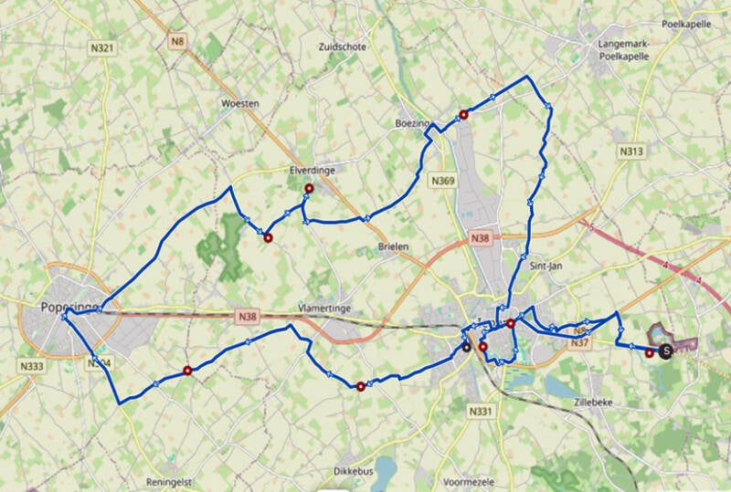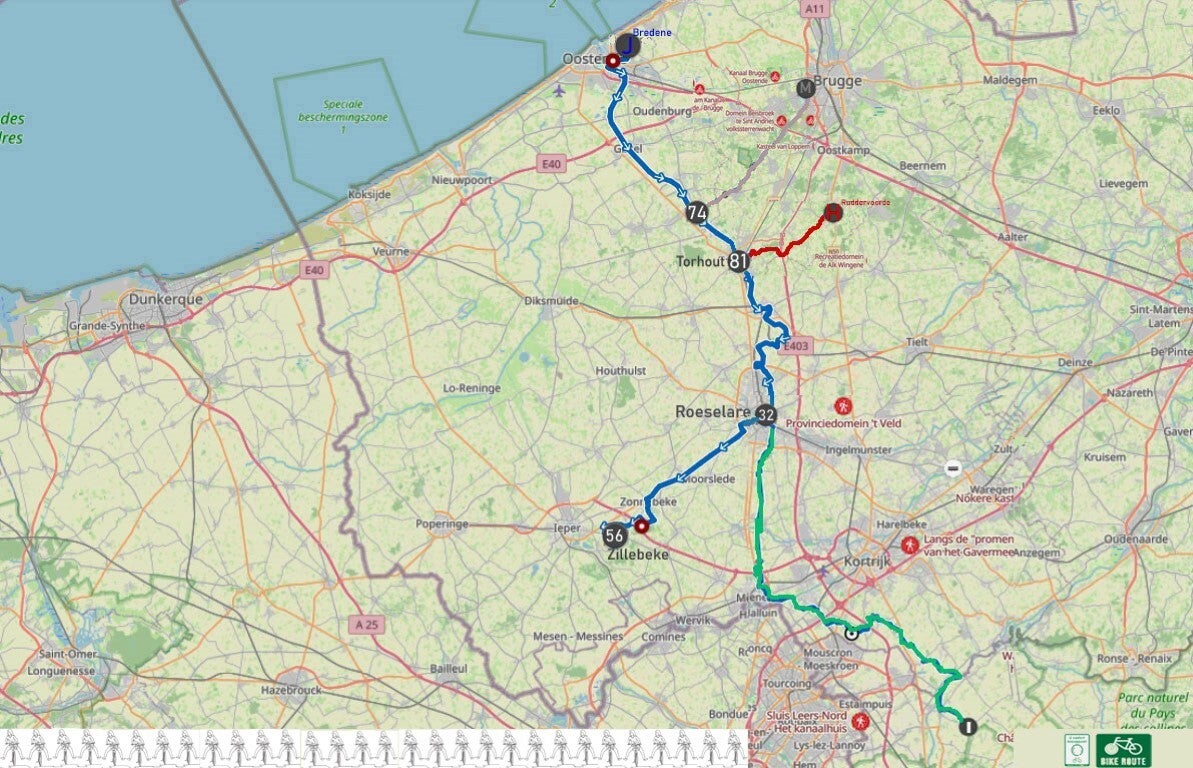 DAG 1: BREDENE - ZILLEBEKE (Kasteelhof 't Hooghe, Meenseweg 481, 8902 Zillebeke) (86 km)