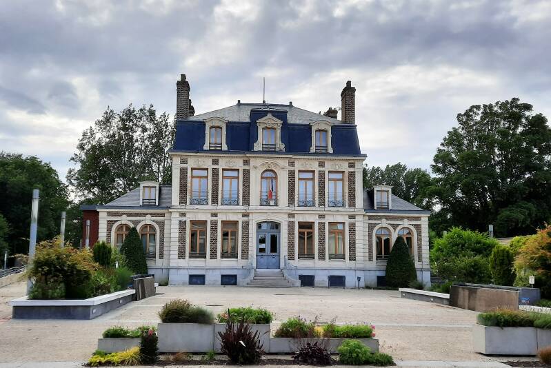 Langs Quai du commerce ligt het gemeentelijk administratief centrum. In heel de stad zijn alle omhulsels rond vuilbakken, bloembakken en ook de balken op dit gebouw vervaardigd uit ijzer met kantmotief.