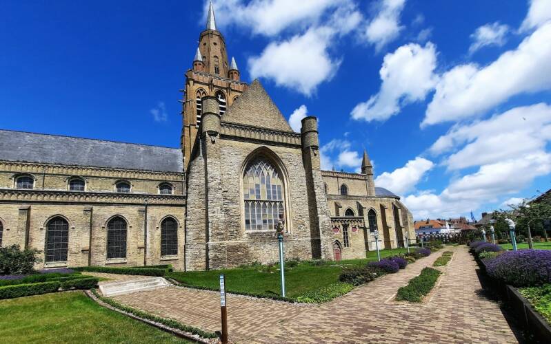 We gaan door het park naar de Onze-Lieve-Vrouwekerk (Église Notre-Dame (12e eeuw)). Hier huwden Charles de Gaulle en Yvonne Vendroux op 7 april 1921.