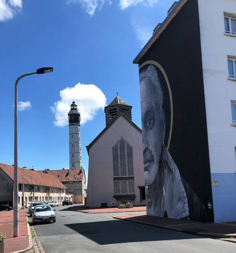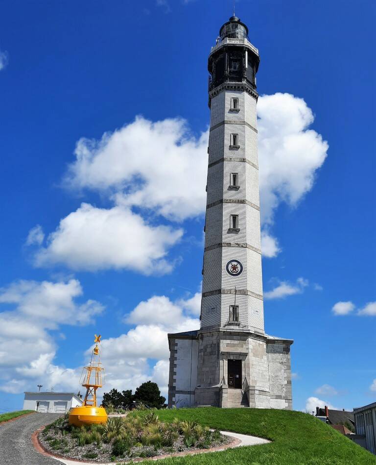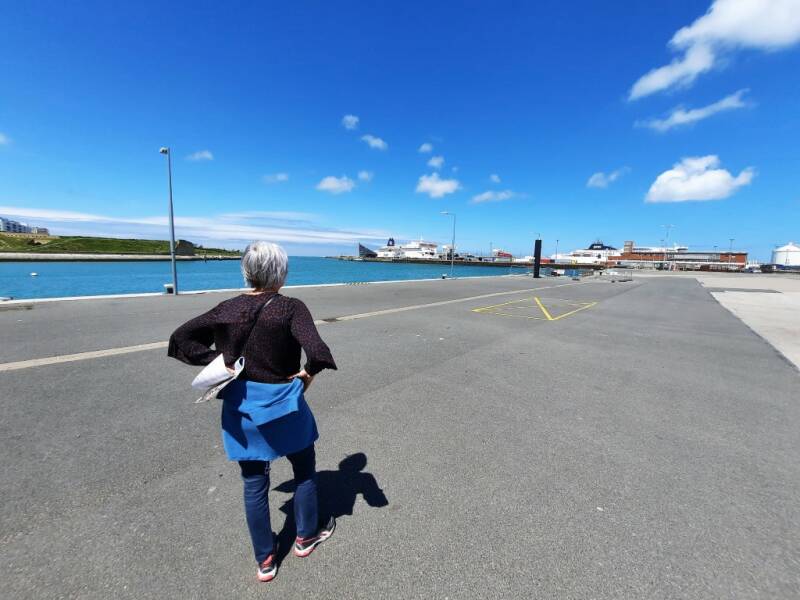 Verderop komen we in de Vissenwijk en de haven van Calais, waar de ferry's klaar liggen voor de overtocht naar Dover. Ondanks het mooie weer, waren de 'white cliffs' niet te zien. De achthoekige Vuurtoren van Calais bevindt zich op een hoge plek in het oude stadshart, in het verlengde van de oude zeehaven. De 55 meter hoge toren telt 271 treden en is opengesteld voor het publiek.
