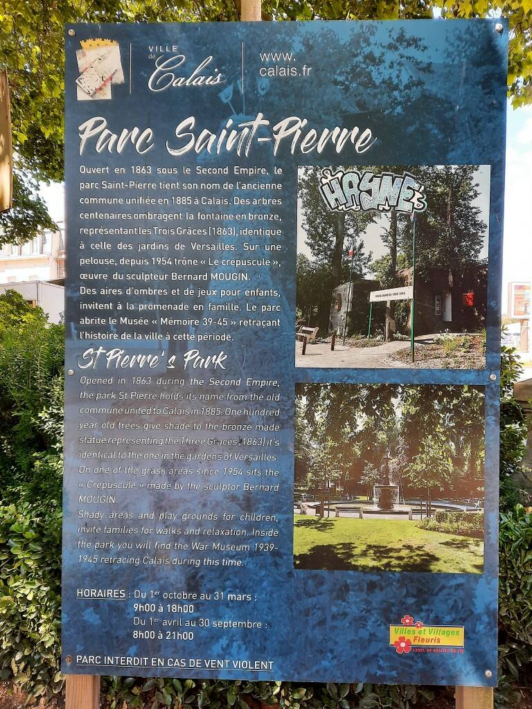 Via de Rue Royale (winkelstraat) en langs Calais Gare bereiken we het Parc Saint-Pierre. Een bosrijke omgeving in het midden van de stad tegenover het stadhuis. Centraal staat de fontein van de '3 gunsten' (Fontaine des ‘Trois Grâces), een prachtige bronzen fontein uit 1863.