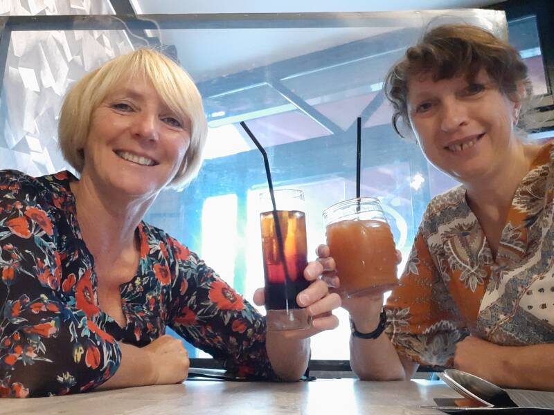 Zonder aarzelen smeten we ons op het terras en klonken op een mooie derde dag.