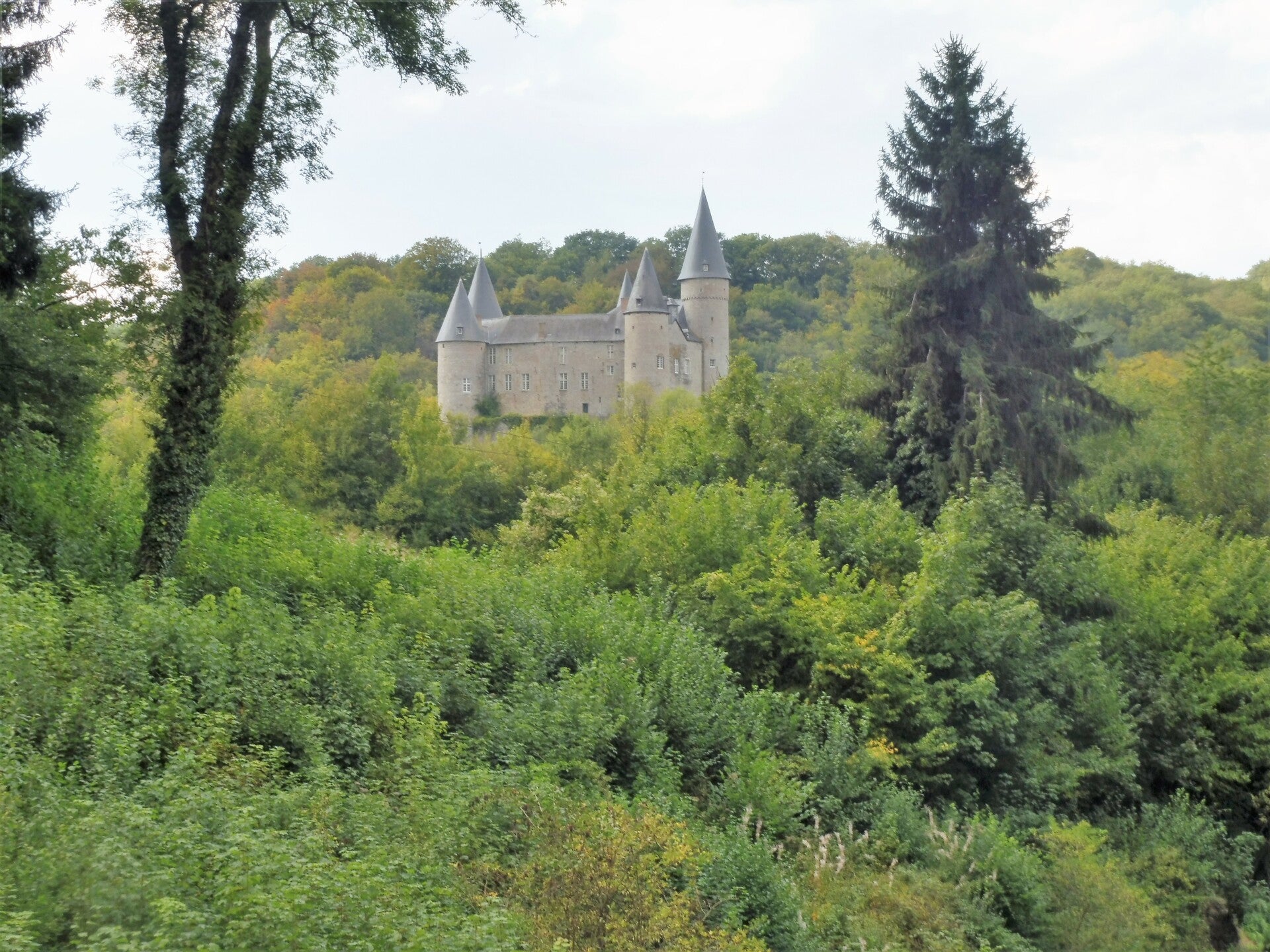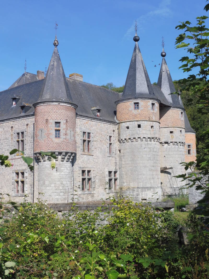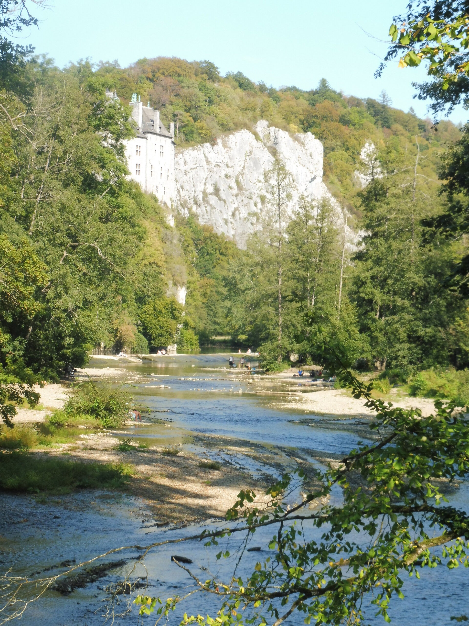 Het kasteel van Walzin is gelegen in Dréhance, thans een deelgemeente van Dinant. Dit neogotische kasteel staat op een steile rots boven de rechteroever van de Lesse, voordat deze in de Maas uitmondt. Wij zitten aan de linkerkant en vervolgen onze weg naar Waulsort.