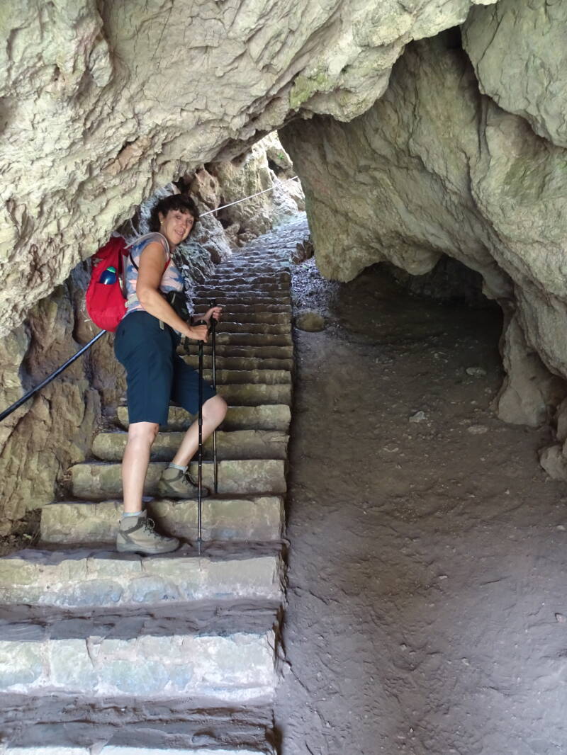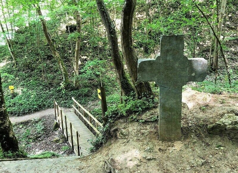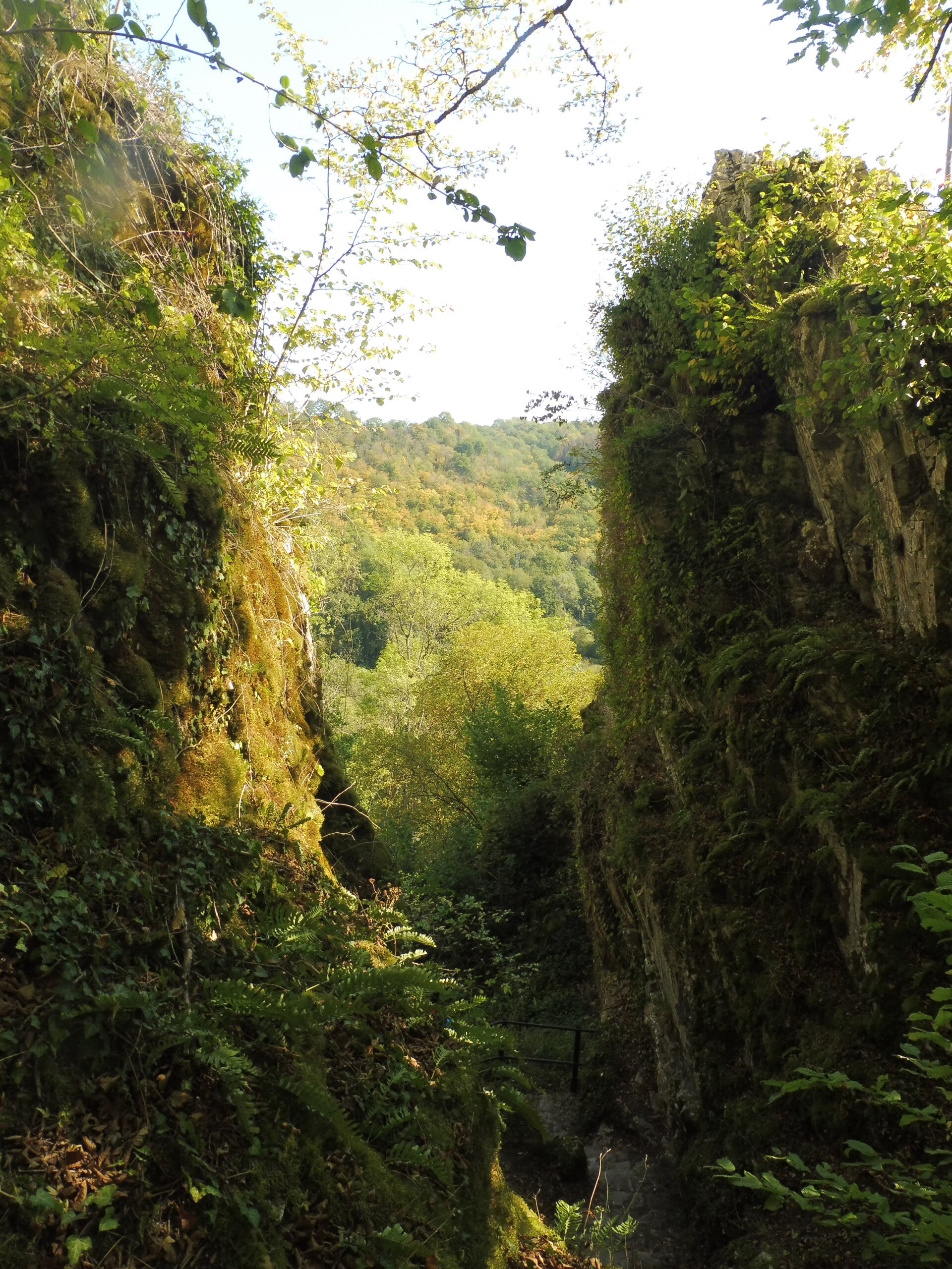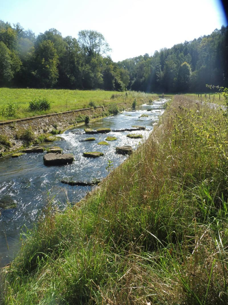 We verlaten het park Furfooz en gaan op pad naar Vèves. Na enige zoektocht wegens de werken in het bos en aan de brug, zijn we weer op het goede spoor geraakt.