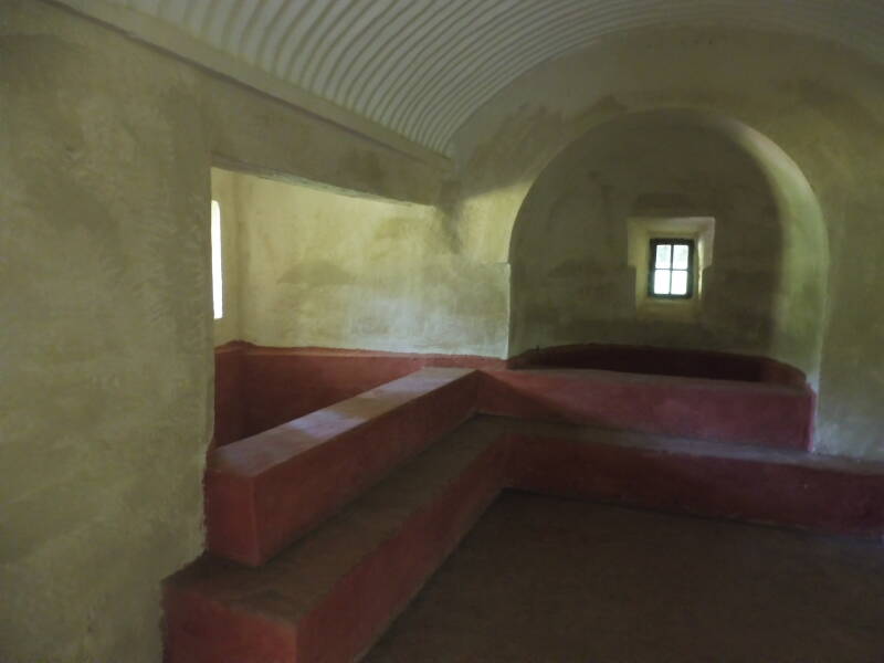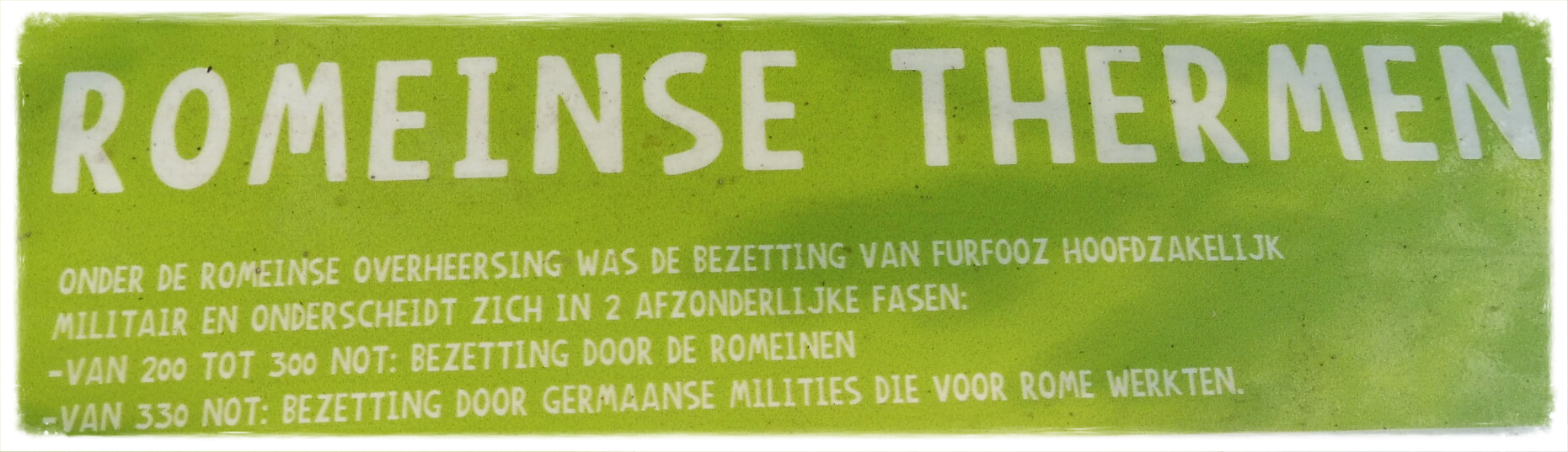 We wandelen tussen de restanten van een middeleeuwse versterking. Daarnaast is de ruïne van een Romeins fort te zien, en een Romeins badhuis uit de derde eeuw. Dat laatste werd in de jaren vijftig van de vorige eeuw volledig gereconstrueerd.