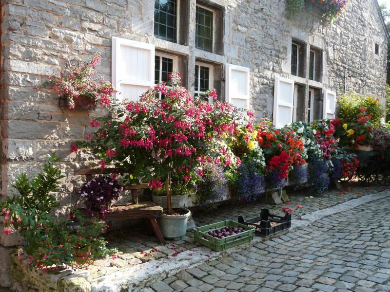 De huizen worden het hele jaar opgesmukt met bloemen,