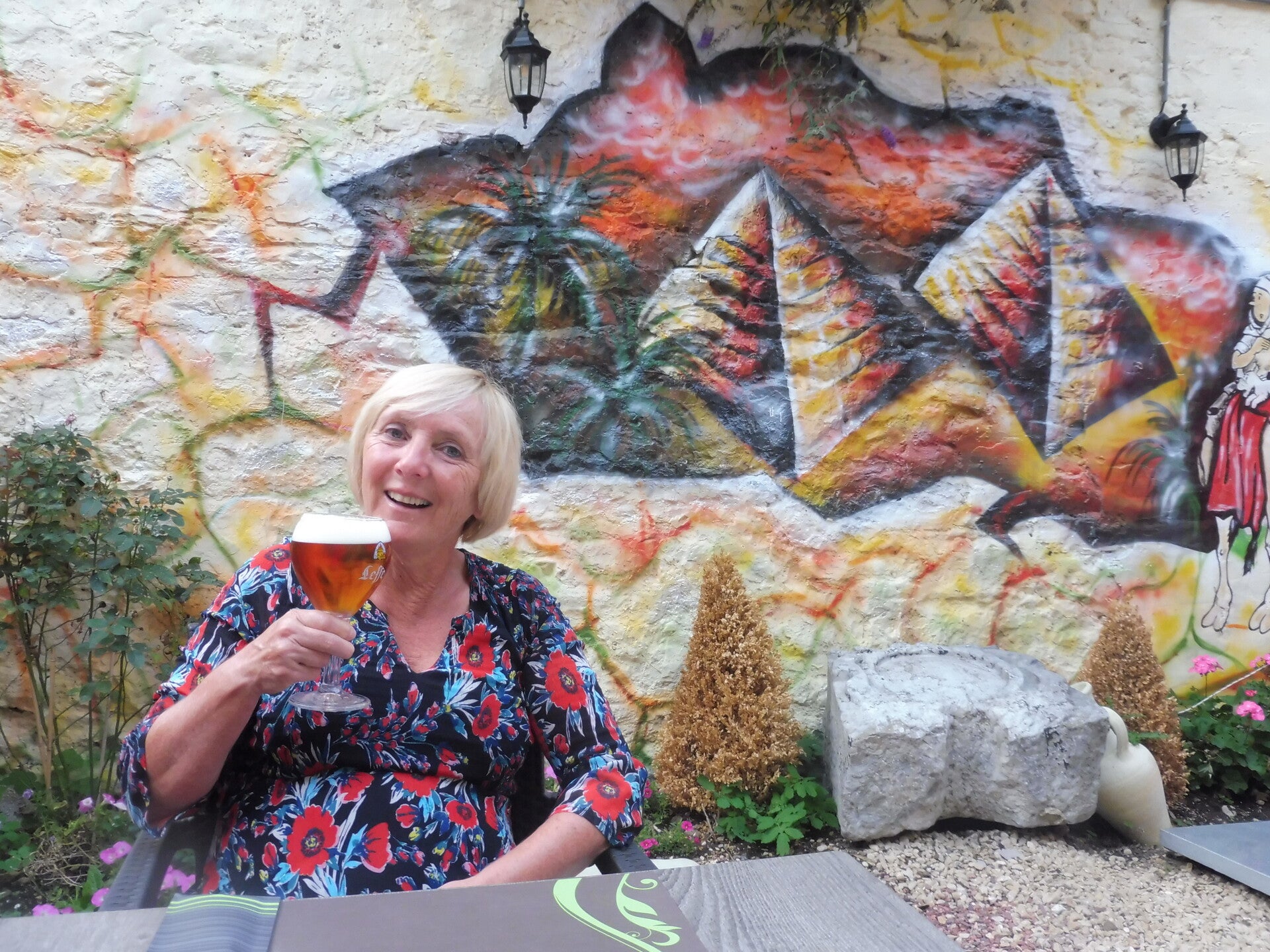 Op het kerkplein in Celles vonden we het eerste café dat open was tijdens de hele wandeling.