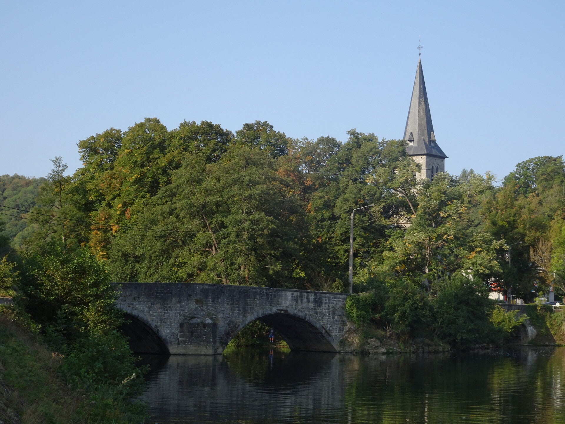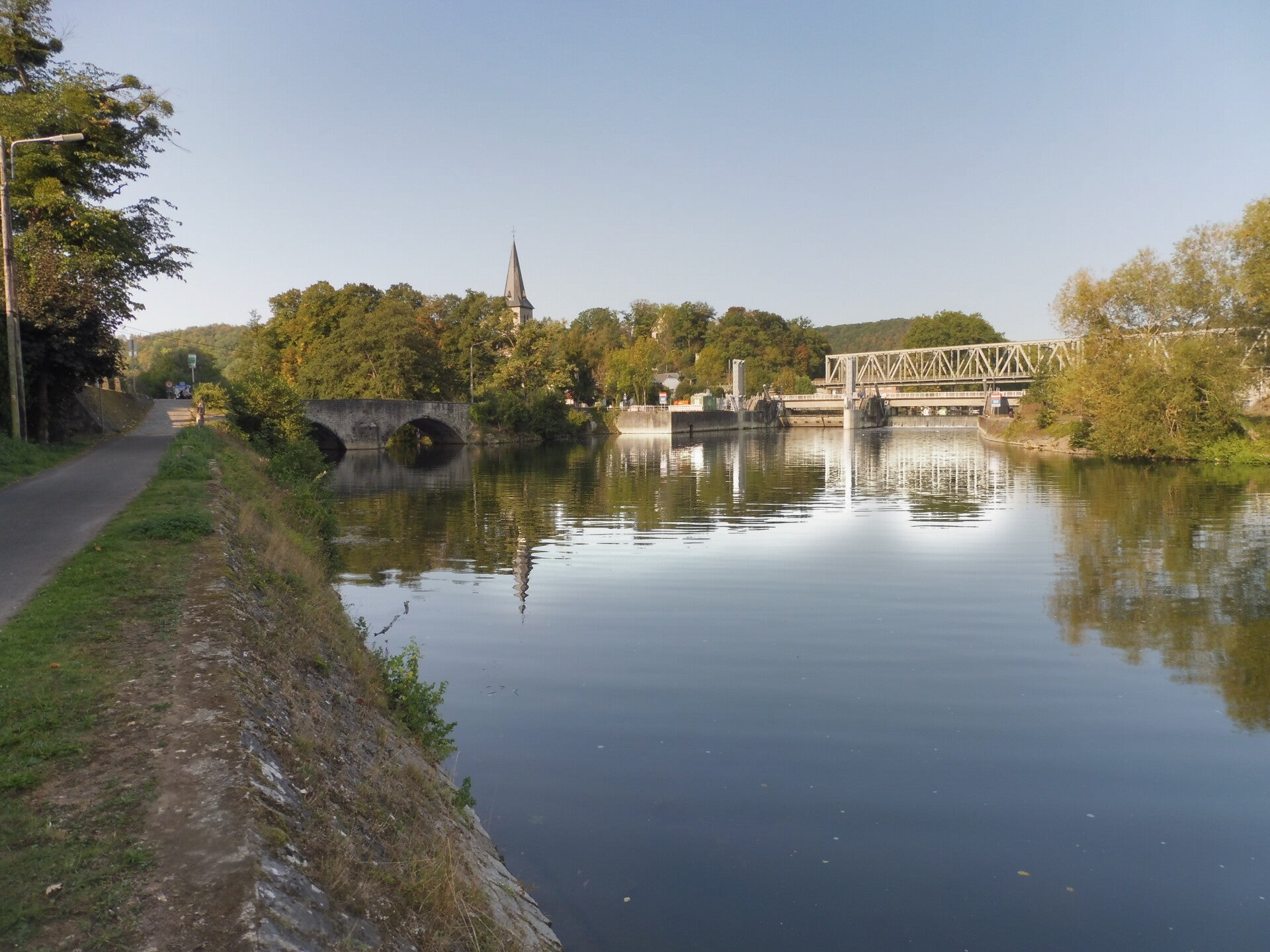 De Pont Saint-Jean overspant de Lesse in de buurt waar de rivier samenvloeit met de Maas en werd in 1778-1782 heropgebouwd. De spoorwegbrug dateert van de periode 1896 tot 1989 en is een van de eerste constructies van dit type die in België in staal werden gerealiseerd. (Bron: infobord langs de Maas)
