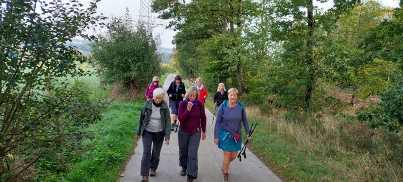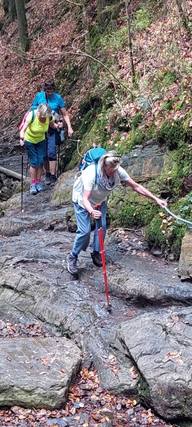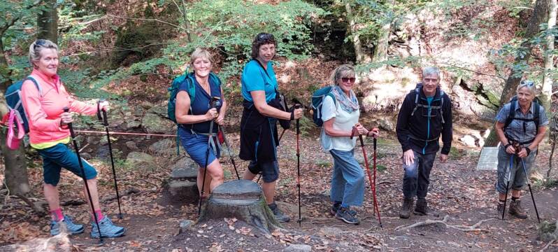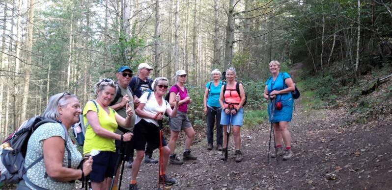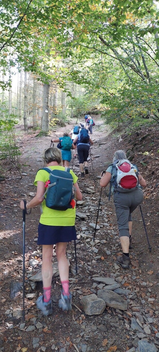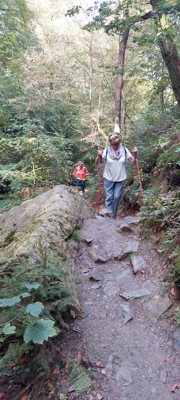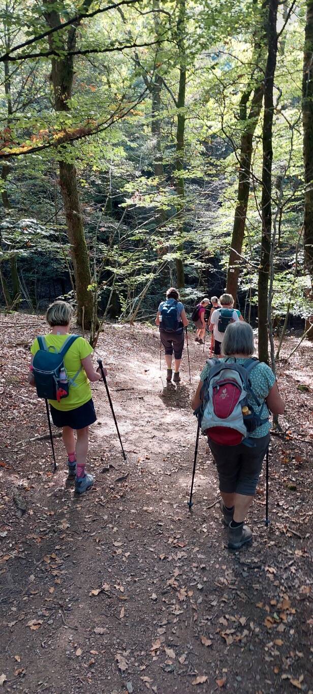 Met een klein groepje volgen we een uitgepijlde wandeling nr.2/rood rechthoekje die pittig begint en