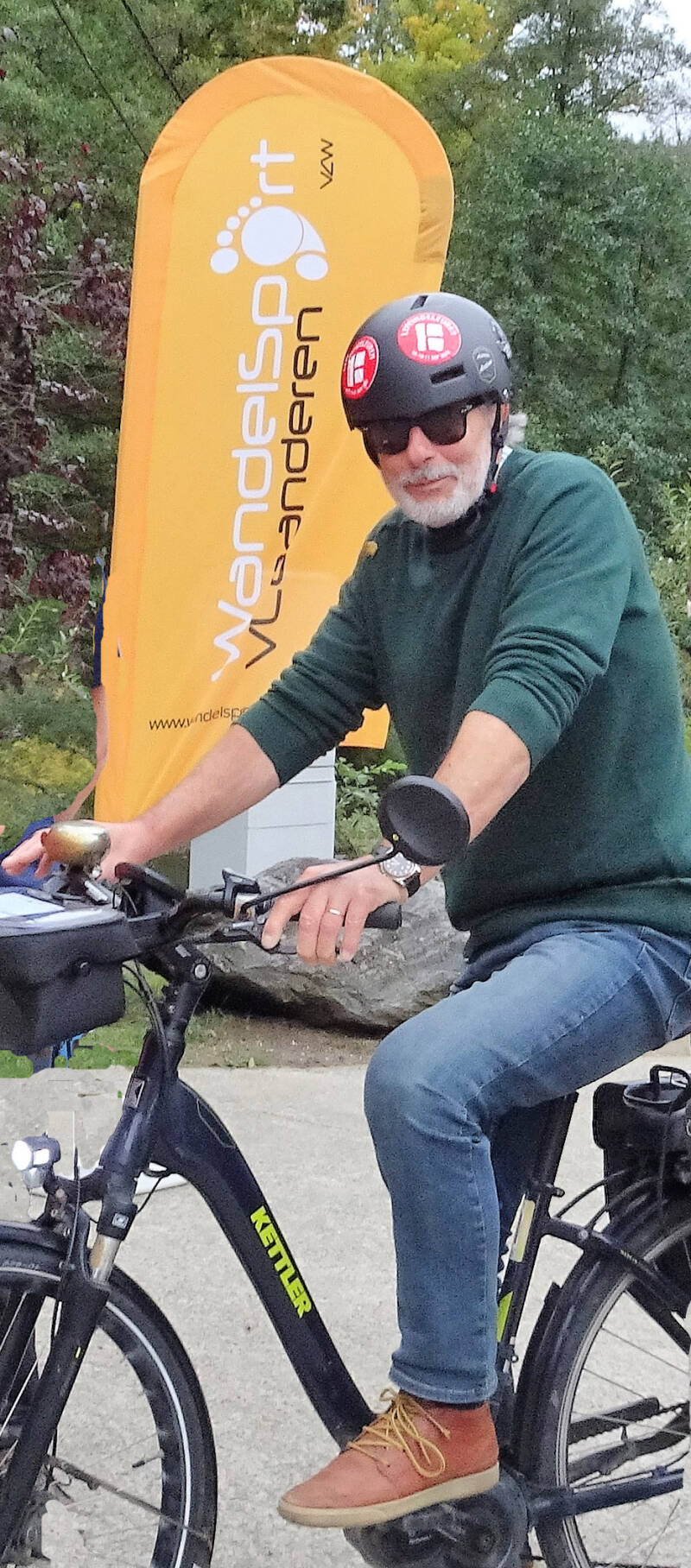 Jan, onze fietser, staat ons al op te wachten en krijgt zo de gelegenheid om ook eens met ons op de foto te staan.