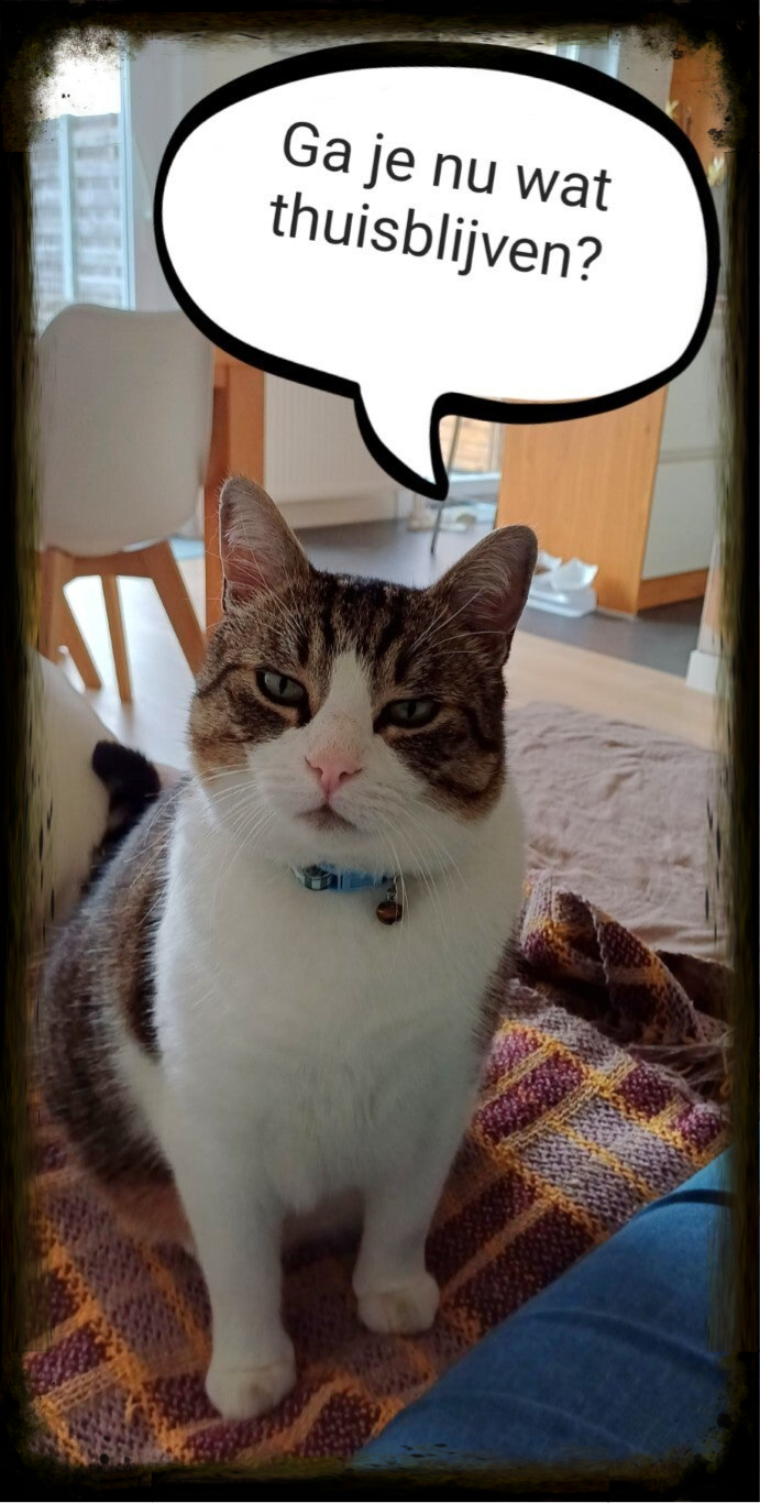 Het kan weer niet snel genoeg gaan en éénmaal binnen, wijkt hij geen seconde van mijn zijde en kijkt mij, ondanks de liefdevolle zorgen van Vanessa en Arno, vragend aan 😲! Pure liefde hé 😻😀.