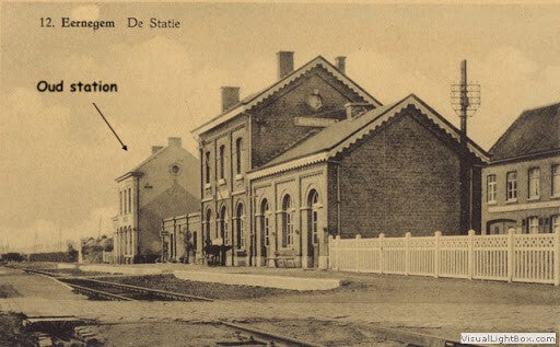In 1867 kreeg Eernegem een eerste spoorwegstation op de lijn 62 Oostende-Torhout. Ca 1900 werd er naast het eerste station een nieuw station gebouwd. Beiden werden gesloopt in 1972.