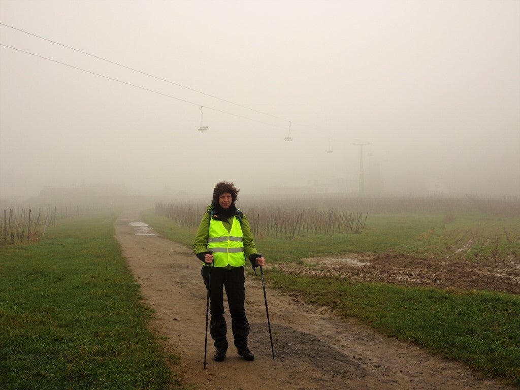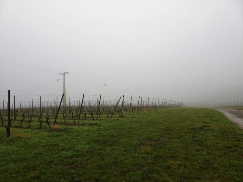 Hier lopen we onder de kabelbaan Cordoba die de Rodeberg en de Vidaigneberg verbindt en langs de druivenranken van Wijngoed Entre deux Monts. Deze zijn voor het eerst aangeplant in 1996. Nu zoveel jaren later zijn ze gegroeid tot een bedrijf met 48000 druivenplanten.