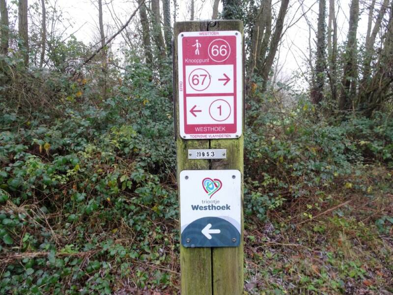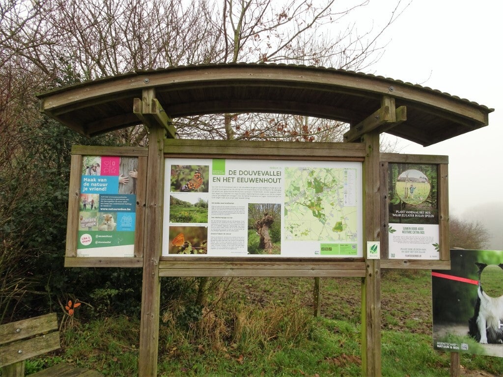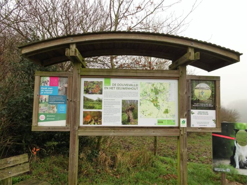 We laten de kerk achter ons en via de Dikkebus- en Victoriastraat bereiken we een natuurdomein met de mooie naam 'Eeuwenhout'. Dit prachtig gebied situeert zich op een helling in de vallei van de Douvebeek tussen de kernen van Loker en Dranouter. De hoogteligging varieert er tussen 45 en 75 meter.