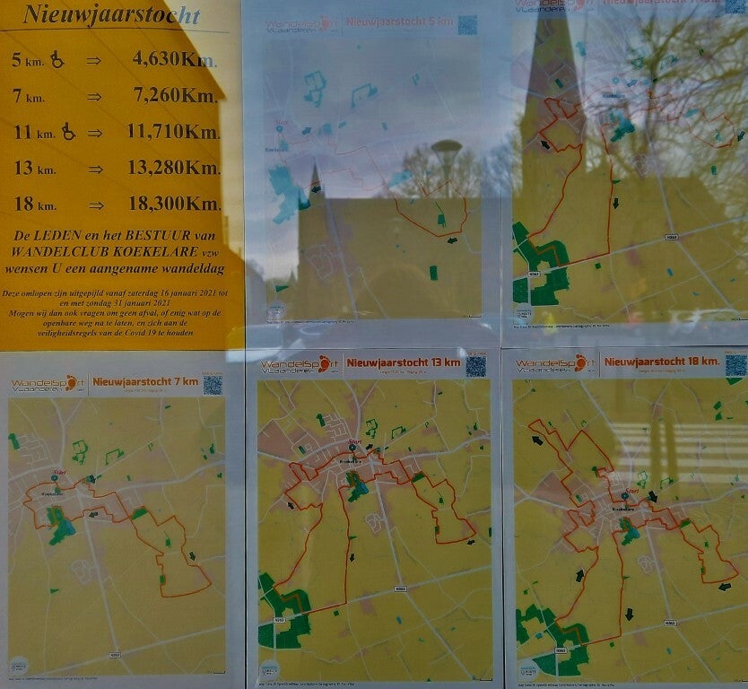 De wandelclub heeft weer een nieuwe coronawandeling bepijld in Koekelare. De omloop gaat in van zaterdag 16 januari tot en met zondag 31 januari 2021 en start aan zaal " De Balluchon" Moerestraat 19 te Koekelare,