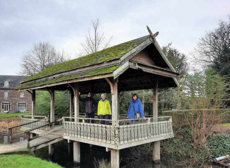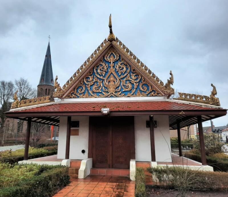 "Sala Thai" of Thais nutsgebouwtje. Het gebouwtje - met uitzondering van de dakpannen, volledig overgebracht uit Thailand, maskeert eigenlijk een elektriciteitscabine (Bron: onroerend erfgoed).