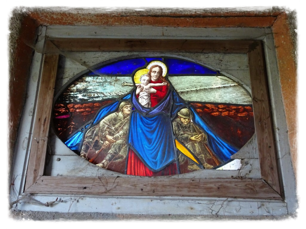 Oorlogsobjecten langs de weg, samen met het bekend kleibeeldje dat een slachtoffer uit WOI voorstelt en dat nu bijna in iedere huiskamer prijkt. Meer hierover bij onze laatste wandeling in Zonnebeke. Wie nood heeft aan een stil plekje langs de weg, kan hier ook zijn 💓 ophalen.