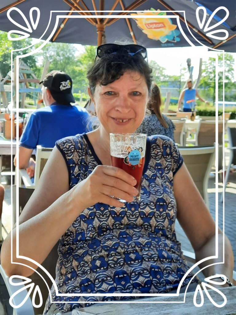 Eindelijk heeft Dominique haar langverwachte terrasje en dito drankje.