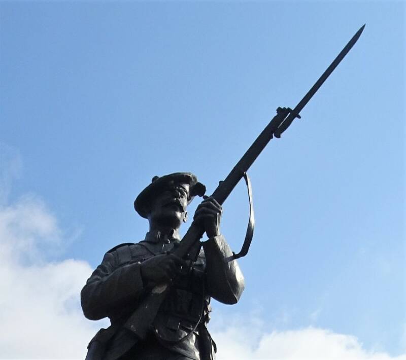 Doorheen ons parcours worden we meermaals geconfronteerd met de gruwel die zich hier afspeelde tijdens de Groote Oorlog door de vele oorlogsmonumenten en militaire kerkhoven. Deze fusiegemeente werd zo goed als vernield tijdens deze wereldoorlog. De obussen liggen hier gewoon voor te rapen.