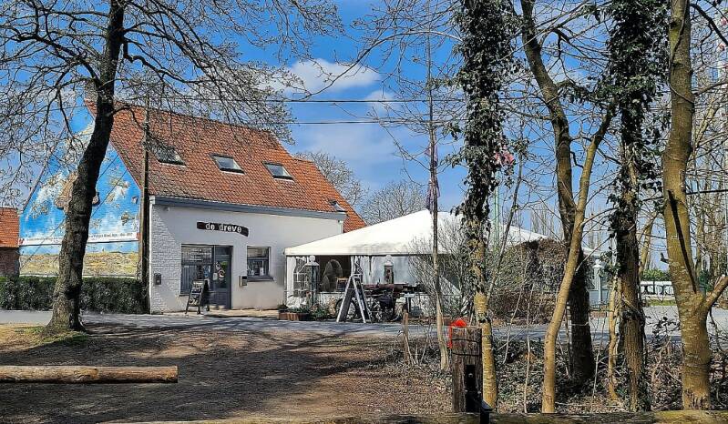 Aan ons eind/beginpunt staat aan café 'De Dreve' een afhaaltent waar we nog even kunnen nagenieten van deze prachtige, doch aangrijpende wandeling.
