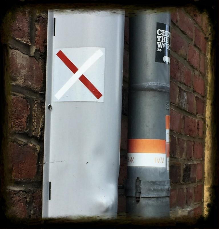 De rode band moet onderaan zijn, en een rood/wit teken verwijst je rechtdoor, terwijl het kruis aangeeft dat je hier niet door mag!