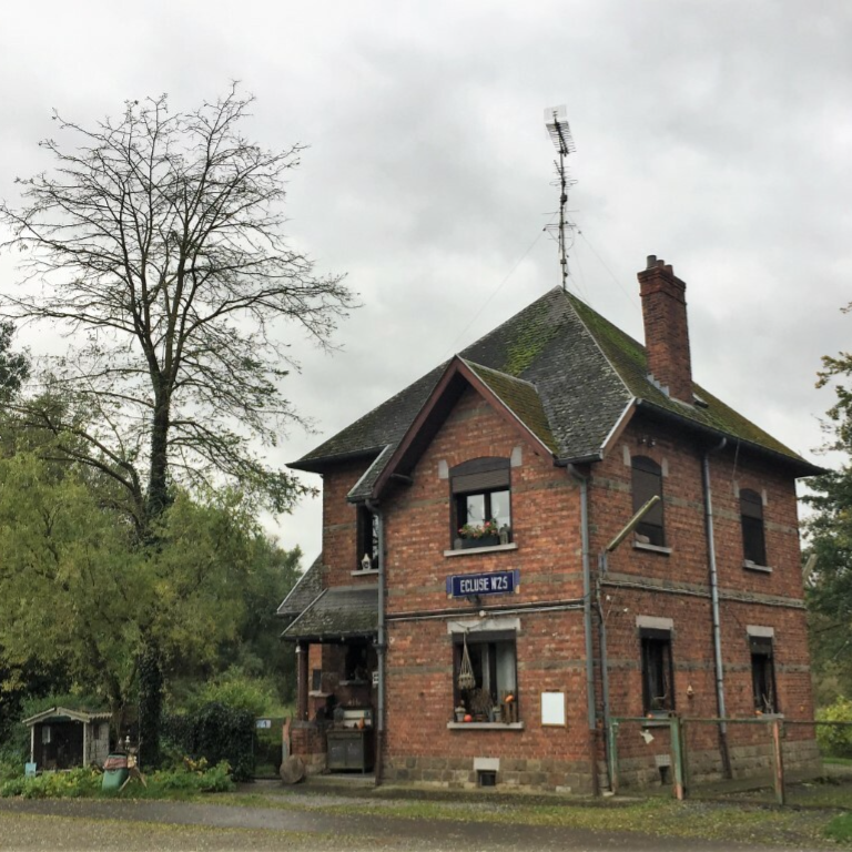 Hier zie je nog de zandzakjes liggen van de overstroming deze zomer. Vanop de brug hebben we een mooi zicht op de scheepslift en het hellend vlak van Ronquières.