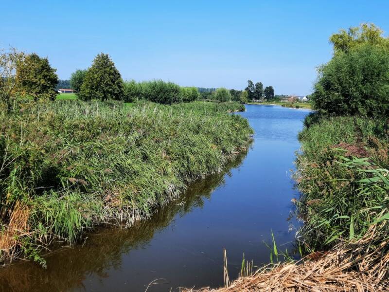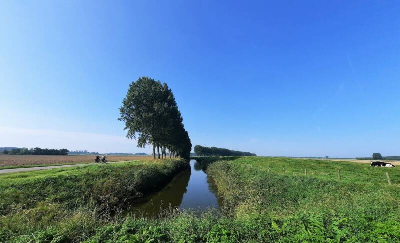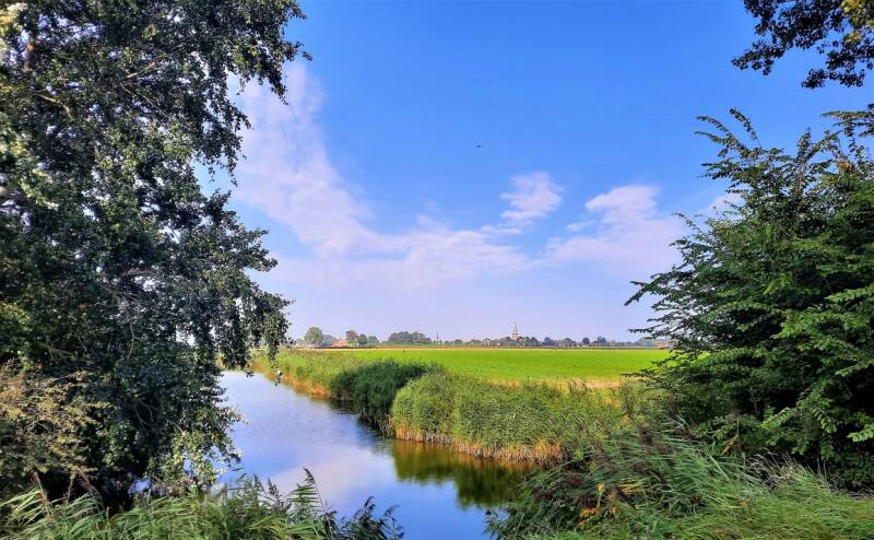 Een mooi kiekje van de Baarzandse kreek met Groede op de achtergrond.