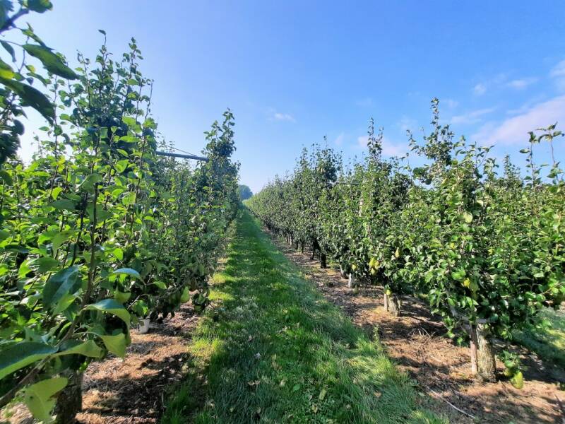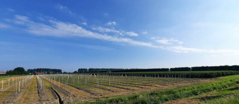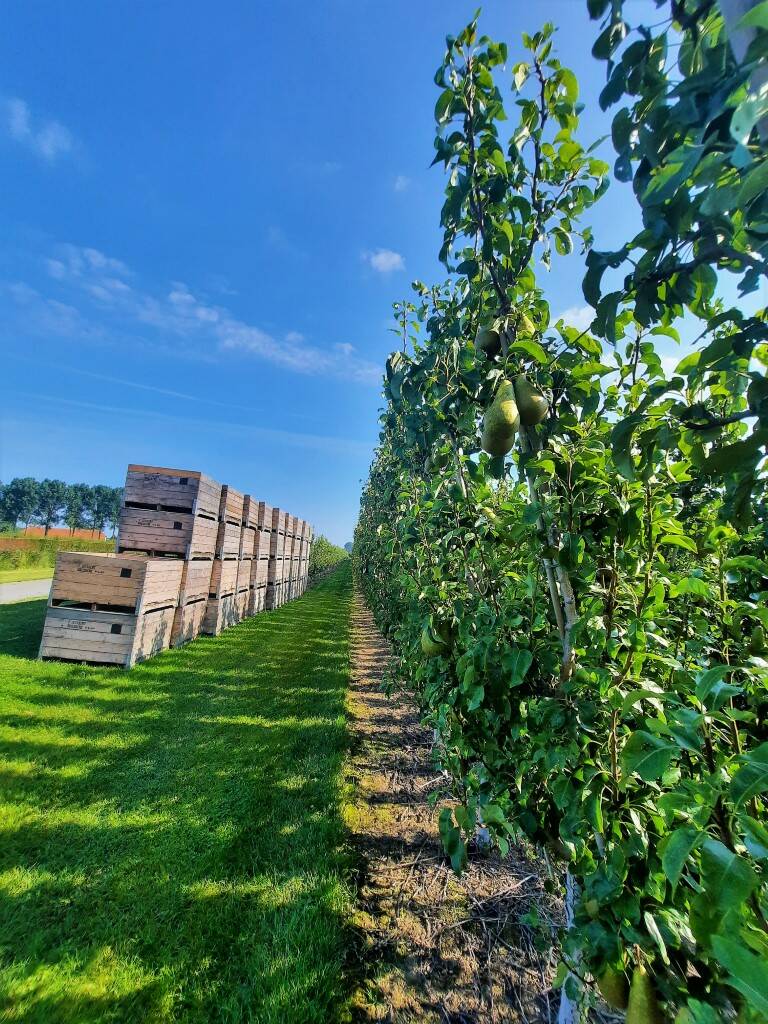 Ik passeer tal van boomgaarden met conferenceperen. De kisten staan al klaar voor de pluk en op de akkers beginnen de voorbereidingen al om de nieuwe struikjes aan te planten.