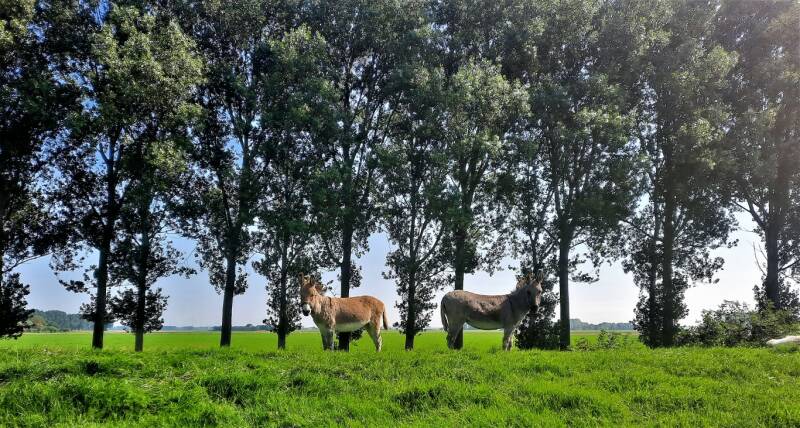 Langs de Nieuwe Havenweg, staan de ezels en schapen op de dijken.