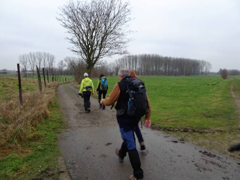 Langs de Scheldedijk (linkeroever) zetten we er nu stevig de pas in en na enkele minuten krijgen we het weer warm.