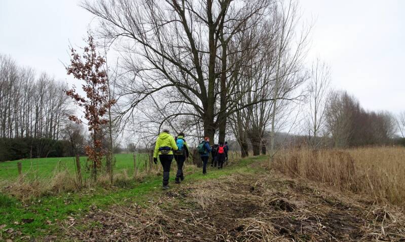 Na een half uurtje langs de Tragelweg (evenwijdig met de Schelde), stappen we de Kalkense Meersen in.