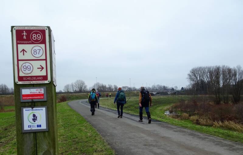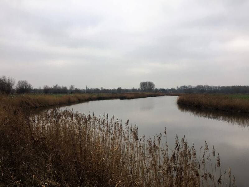 We komen uit op de Oude Schelde en lopen een ferm stuk langs deze Scheldemeander.