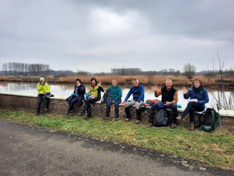 Bij een infobord over de Oude Schelde, stonden Dominique en Micheline erbij en kijken er naar, maar geen nood ... Werner to the rescue 😂.