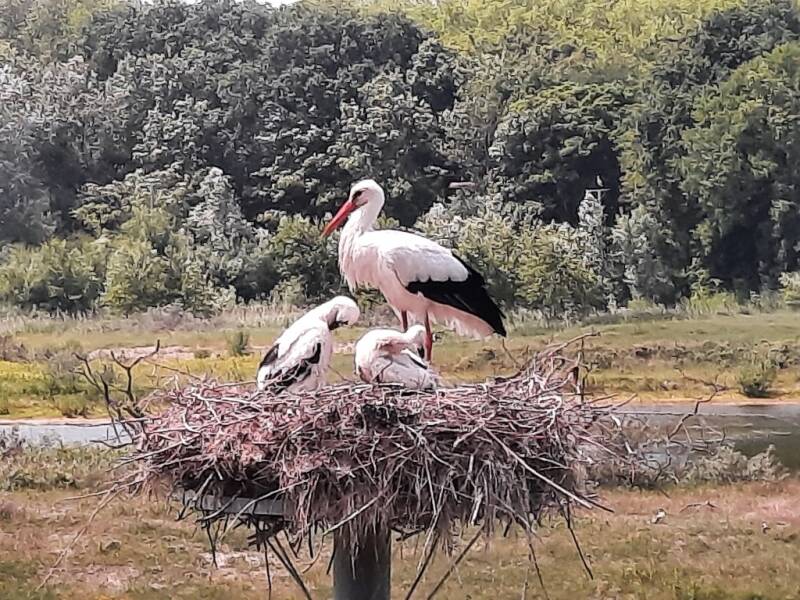 In het park zijn er nu 32 bekende nestplaatsen ter beschikking voor het nieuwe seizoen, waarvan 21 kunstnesten. De ooievaars gebruiken elk jaar opnieuw hetzelfde nest en broeden vaak met dezelfde partner van het jaar ervoor. Momenteel zitten er 20 jongen. Ieder jong wordt geringd en van zodra de hoogtewerker in de buurt komt, vliegen de ouders weg en houden de jongen zich dood tot ze terug in het nest liggen. Een ooievaar kan 30 jaar worden, maar de meeste sterven in hun eerste levensjaar. Vanuit de ooievaarstoren heb je een mooi zicht op een nest.