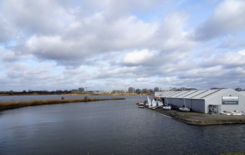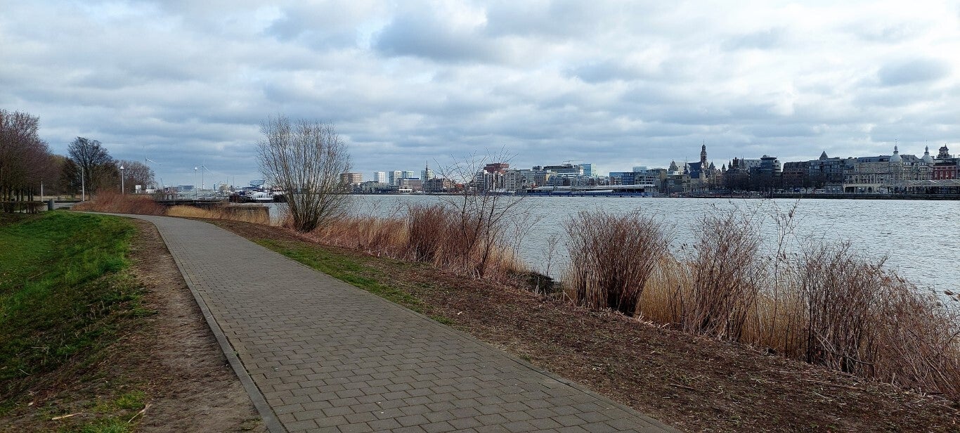 We lopen 2 km langs de drukke Beatrijslaan en passeren het Galgenweel, de 40 ha grote watersportplas van Antwerpen.