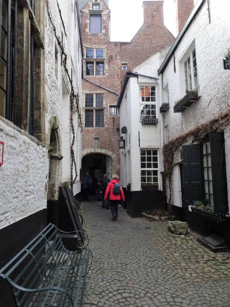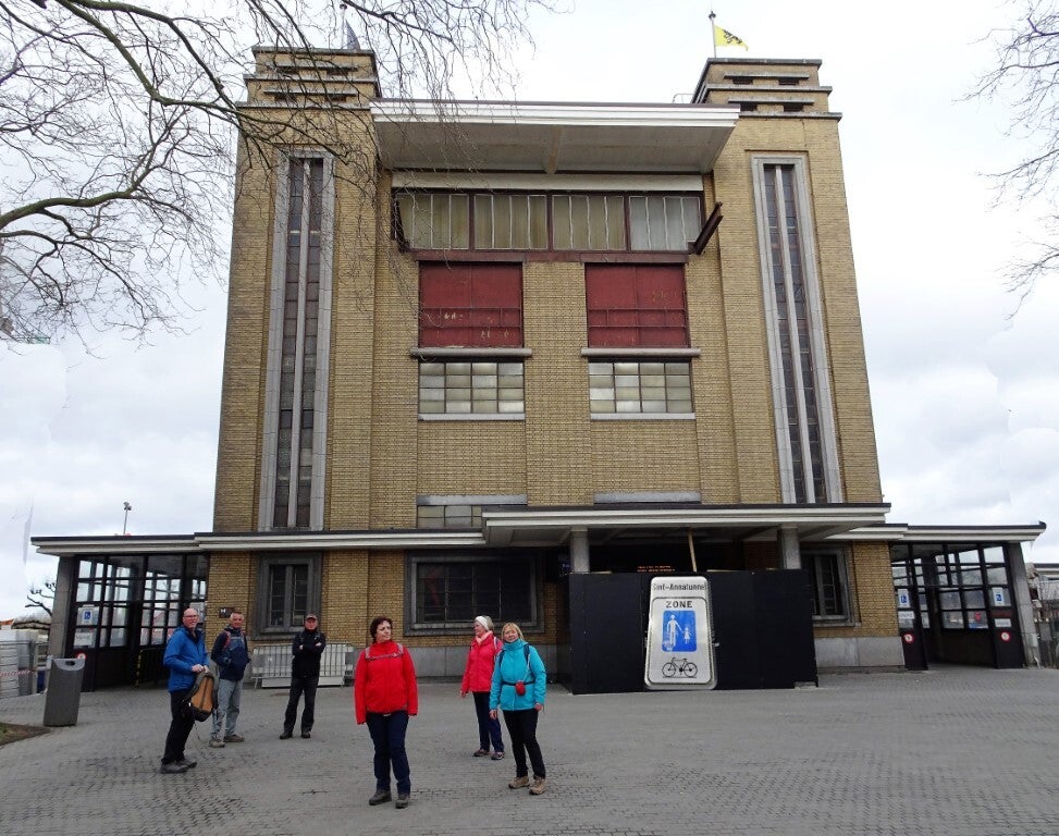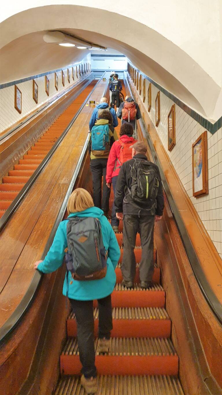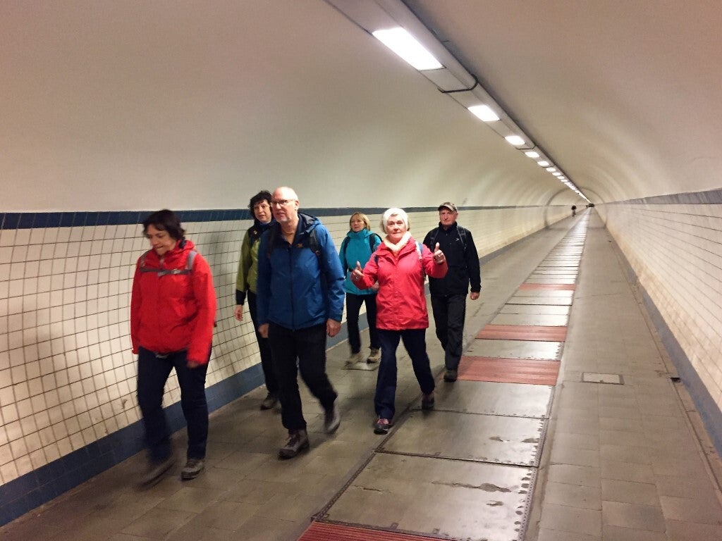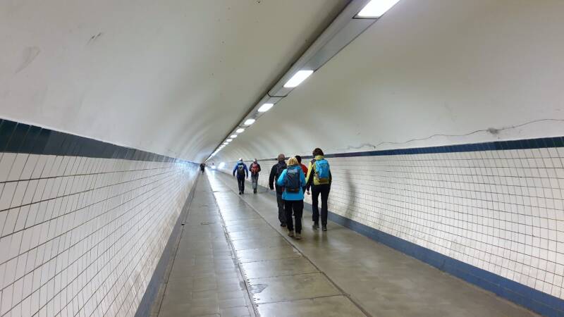 De trein is stipt op tijd en via de Keiserlei, de Meir en de Groenplaats stappen we naar de Sint-Annatunnel