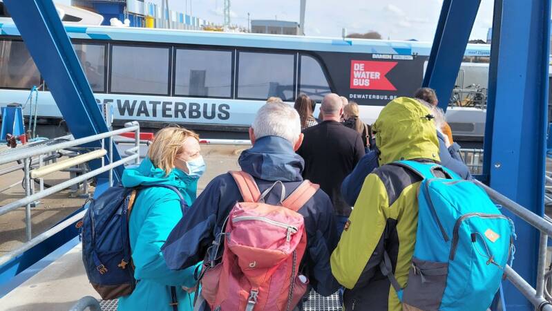 Nog even de uren checken vooraleer we de waterbus nemen, die ons weer naar Antwerpen brengt.